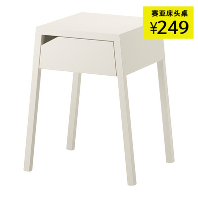 赛亚床头桌: 抽屉里留有空间,可为充电器等安装复式插座。 插头可从抽屉后面和背板之间接到插座。尺寸:46x37 cm 产品货号 : 502.270.15